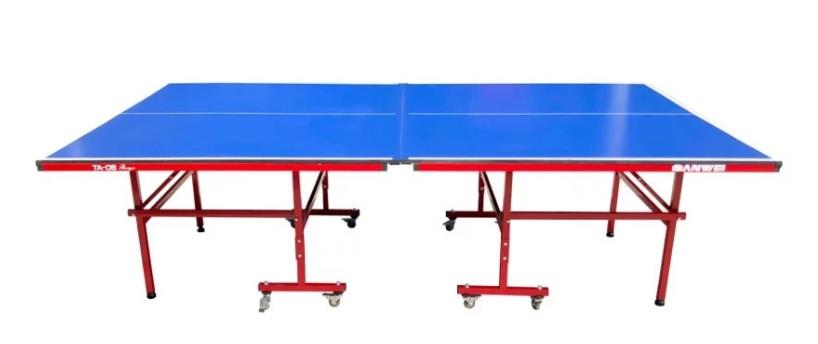 Surface thickness: 16 mm Surface material : MDF Surface painting: UV Surface color : BLUE Frame & Leg color : Red Frame size : 30 x 20 mm Leg size : 30 x 30 mm Wheels : 8 x 75mm with lock Net & Post: Net Excluded